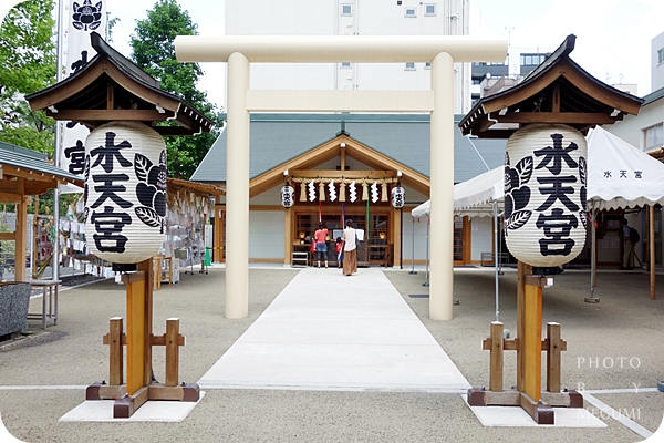 在綠道與甘酒橫丁交會的路口轉個彎,與明治座遙遙相望的水天宮沒多久便映入眼簾。